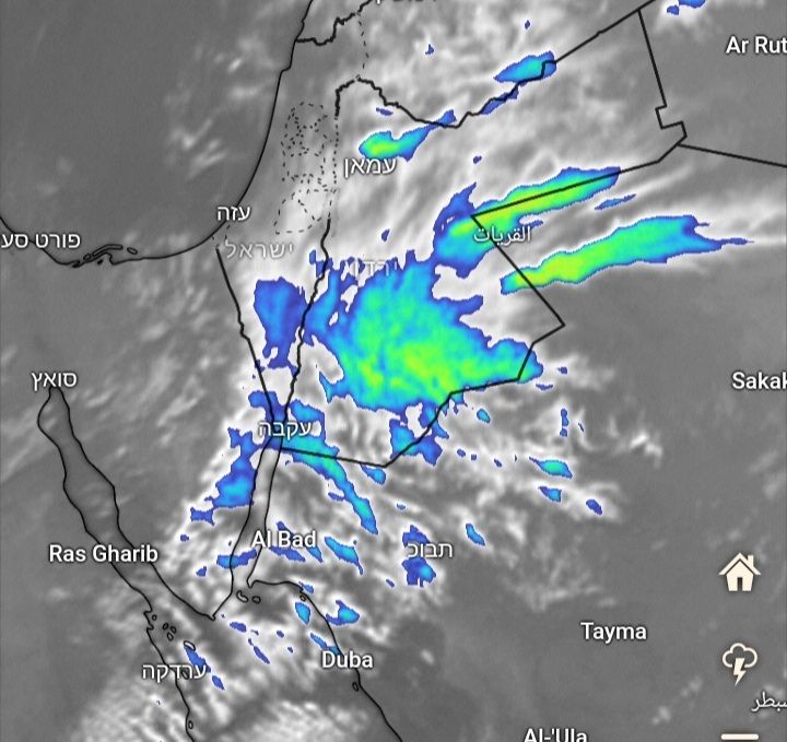 בימים האחרונים רוב העננים במרכז הנגב והערבה, תוצר לא קיים, של המכ"ם.