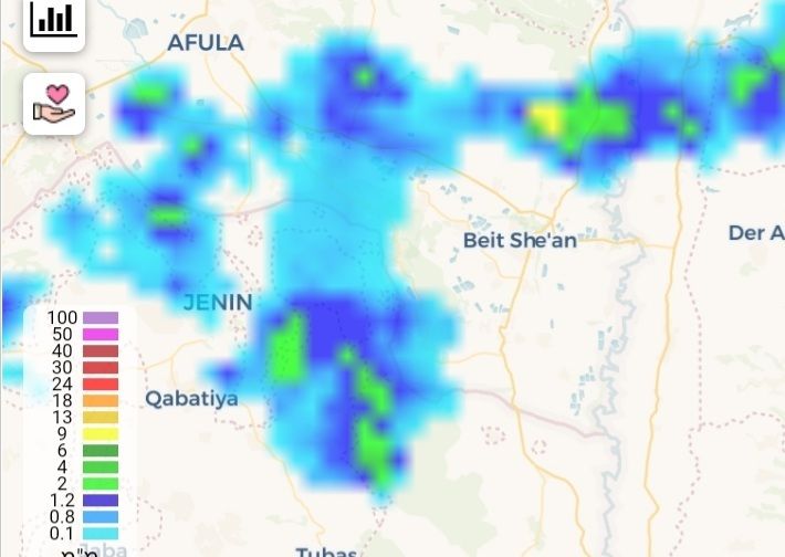 גשם קל יורד כעת בא.ת הצפוני של העיר בית שאן מלווה בברקים ורעמים