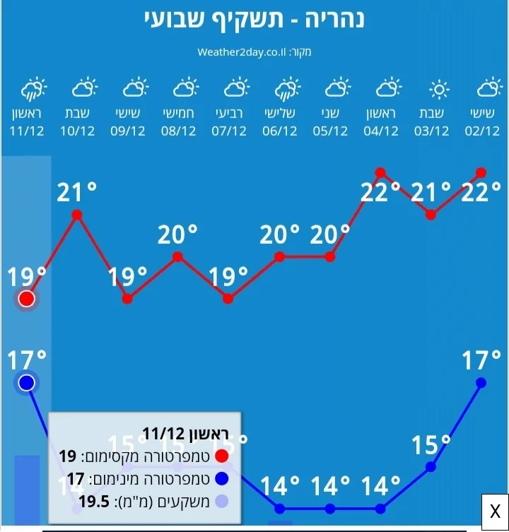 כרגע הצפי בנהריה לשבוע הבא (לפחות חציו הראשון של השבוע)- 0 מ''מ.