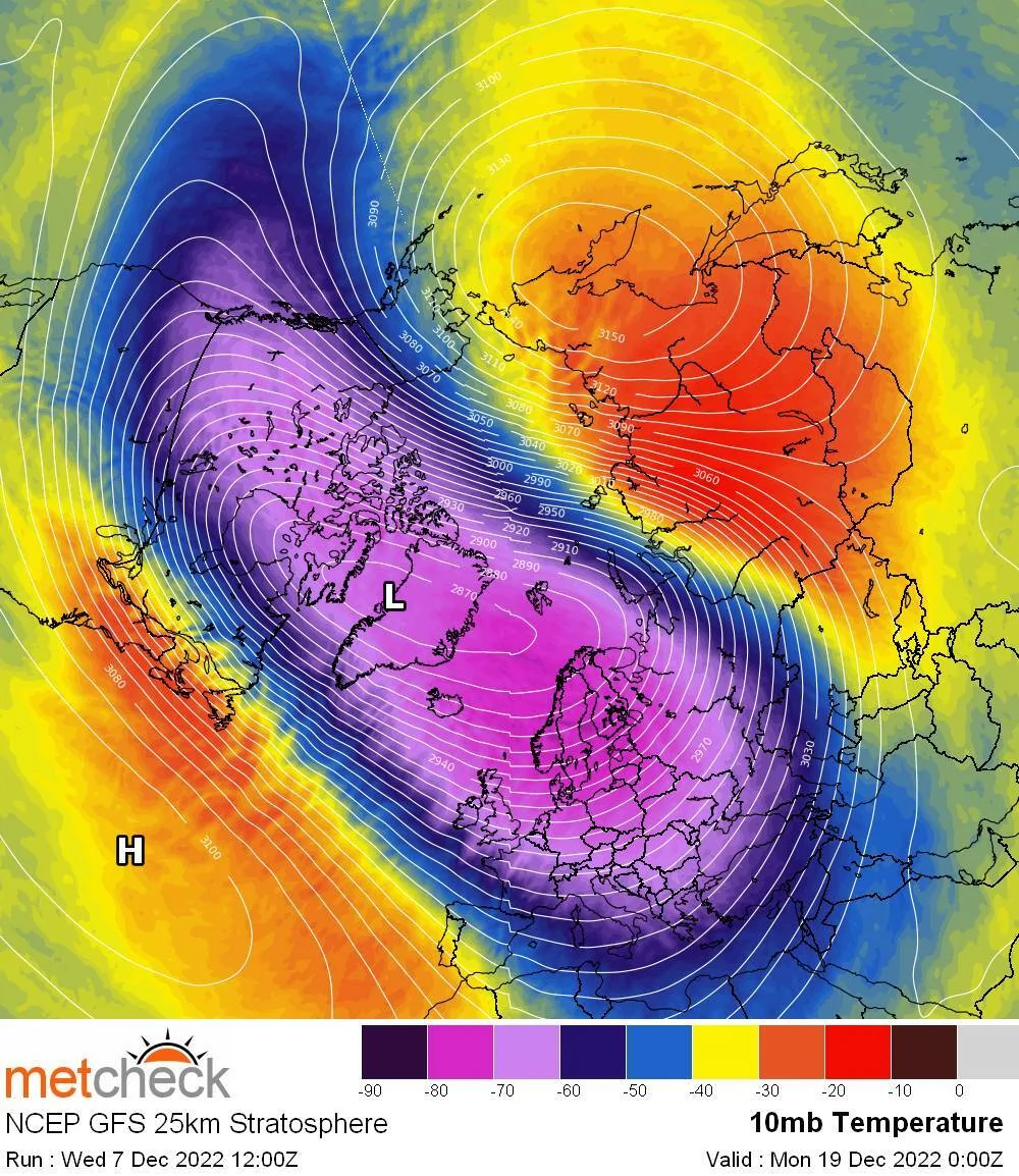 - הוורטקס הפולארי בגובה סטראטוספירי (25 ק"מ) חזוי לשלוח אוויר קר מאוד עמוק דרומה דני