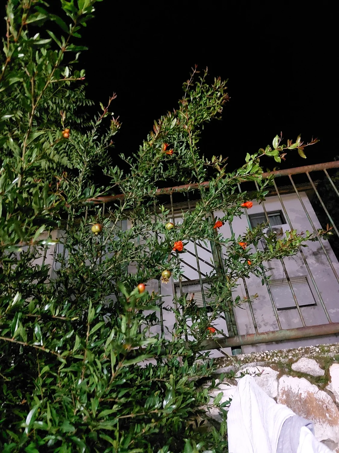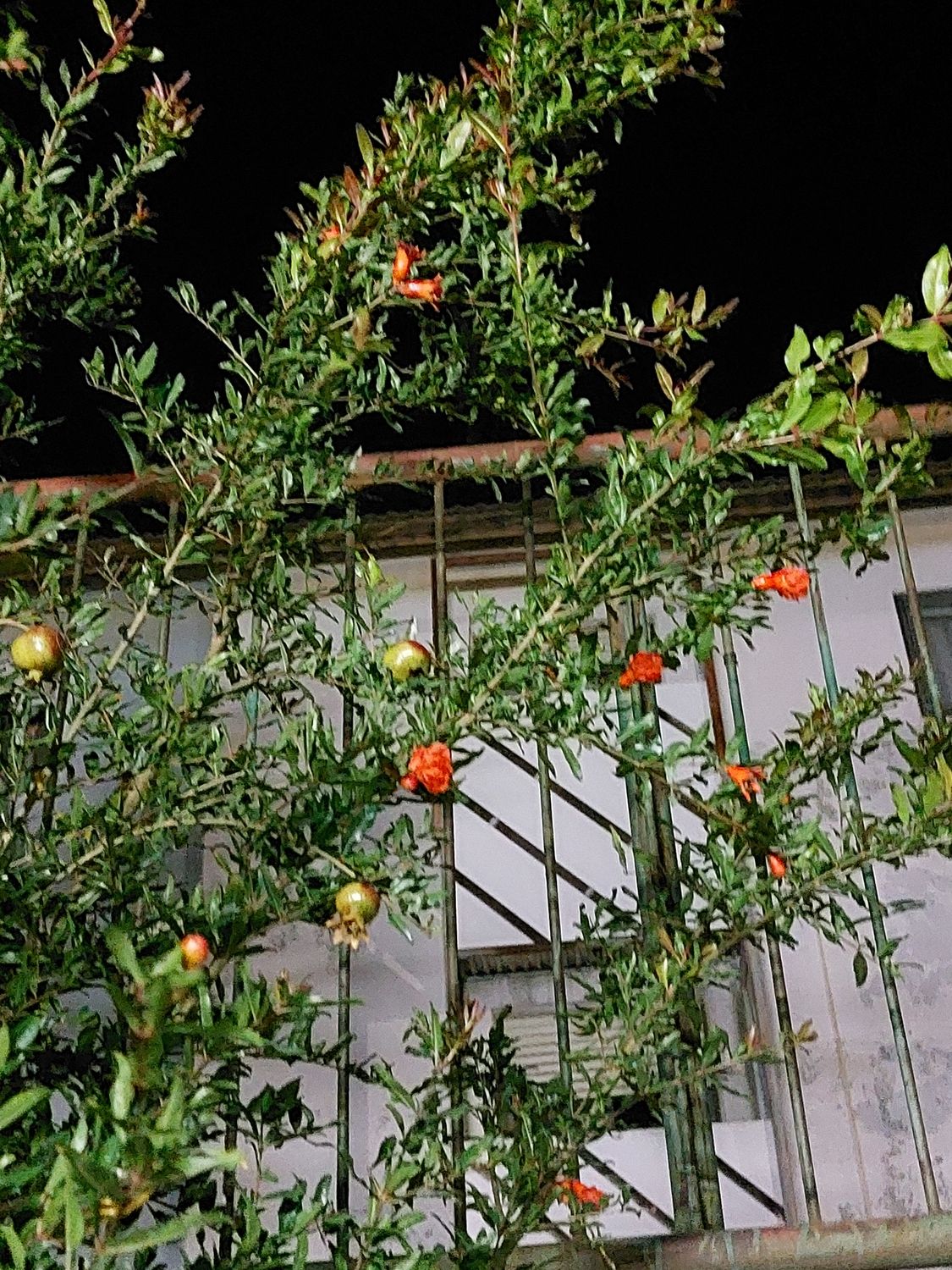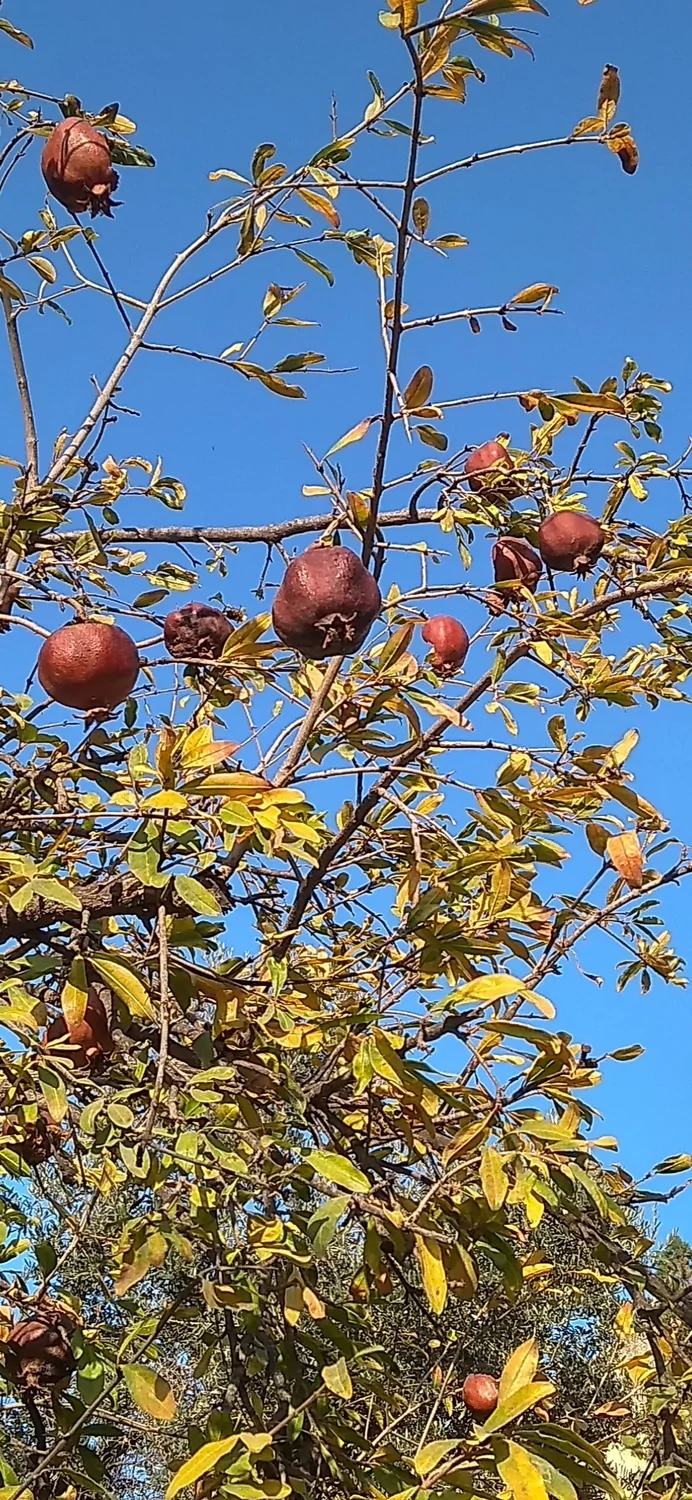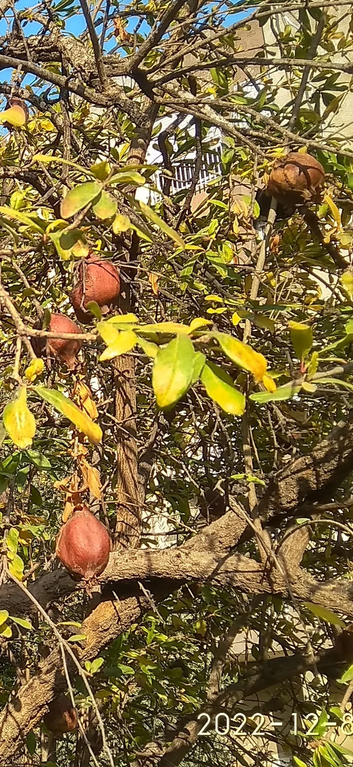 בהתחלה השיתוף שלך נראה לי דמיוני, ולרגע חשדתי שאולי בטעות שותפה כאן תמונה שצולמה בעבר ולא כעת (סליחה על החשד). וכ''ז למה? כי פריחת הרימונים היתה כבר לפני חצי שנה ויותר , ומהר מאוד היא התחלפה מפריחה לצמיחת פירות, ומלפני כארבעה חודשים כבר היו רימונים שהבשילו והיו ראויים למאכל, וכעת עצי הרימונים נימצאים בשלכת, וגם הרימונים שנשארו על העצים כבר יבשים ורקובים. כך זה לפחות בעצי הרימונים הסמוכים לביתי (תמונות מצורפות). לכן זה היה נראה לי דמיוני שתמונה כזאת צולמה כעת.