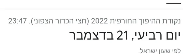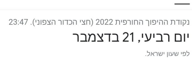 היום מתחיל החורף האסטרונומי שאין לו קשר לחלוקת העונות מבחינת מזג האויר