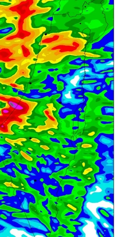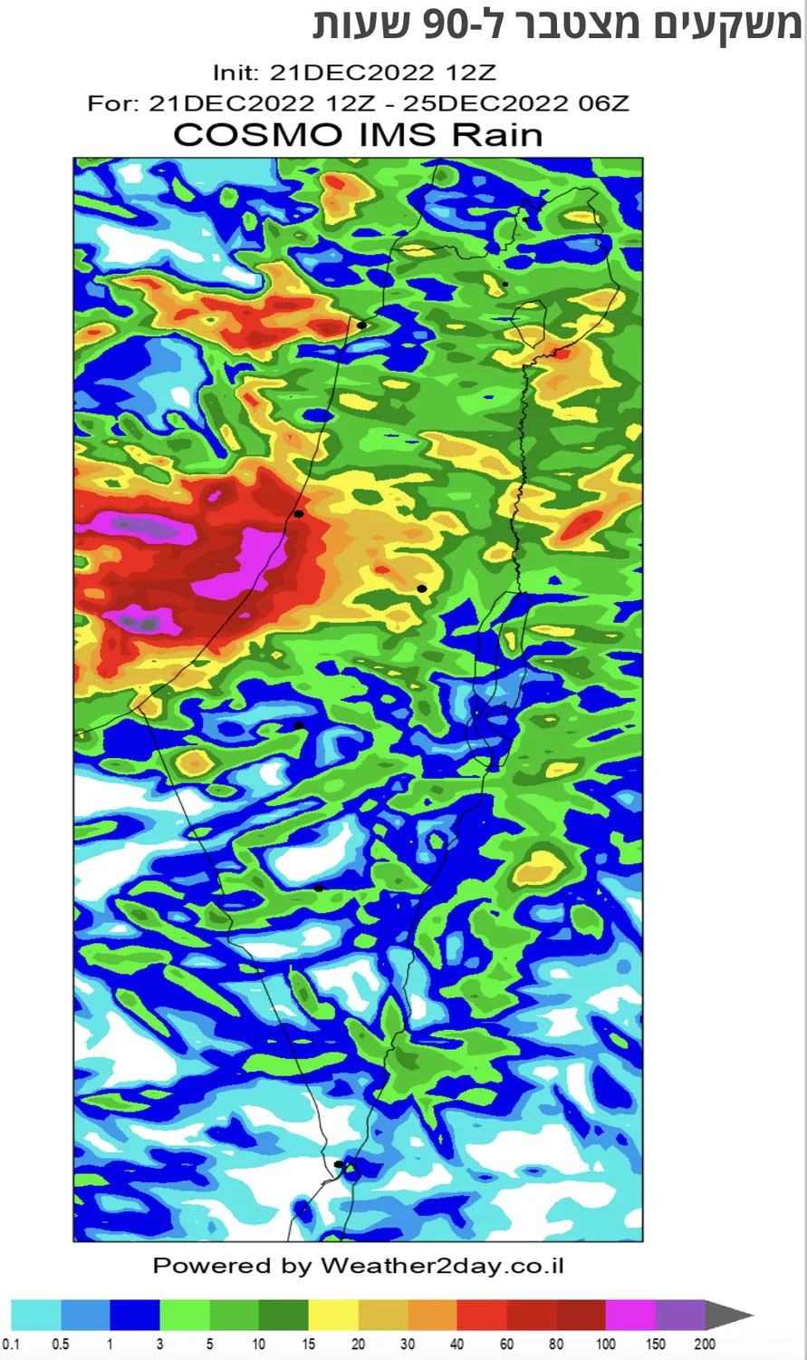 - קוסמו מפציץ את מישור החוף הדרומי - עד 150 ממ! קומולוס