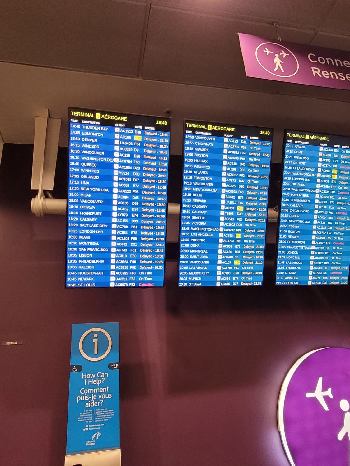 2 תמונות שצילמתי, אחת מהן היא בשדה תעופה אתמול שמראה את לוח הטיסות ואיך זה מרגיש כשמגיעה סופה של פעם ב..