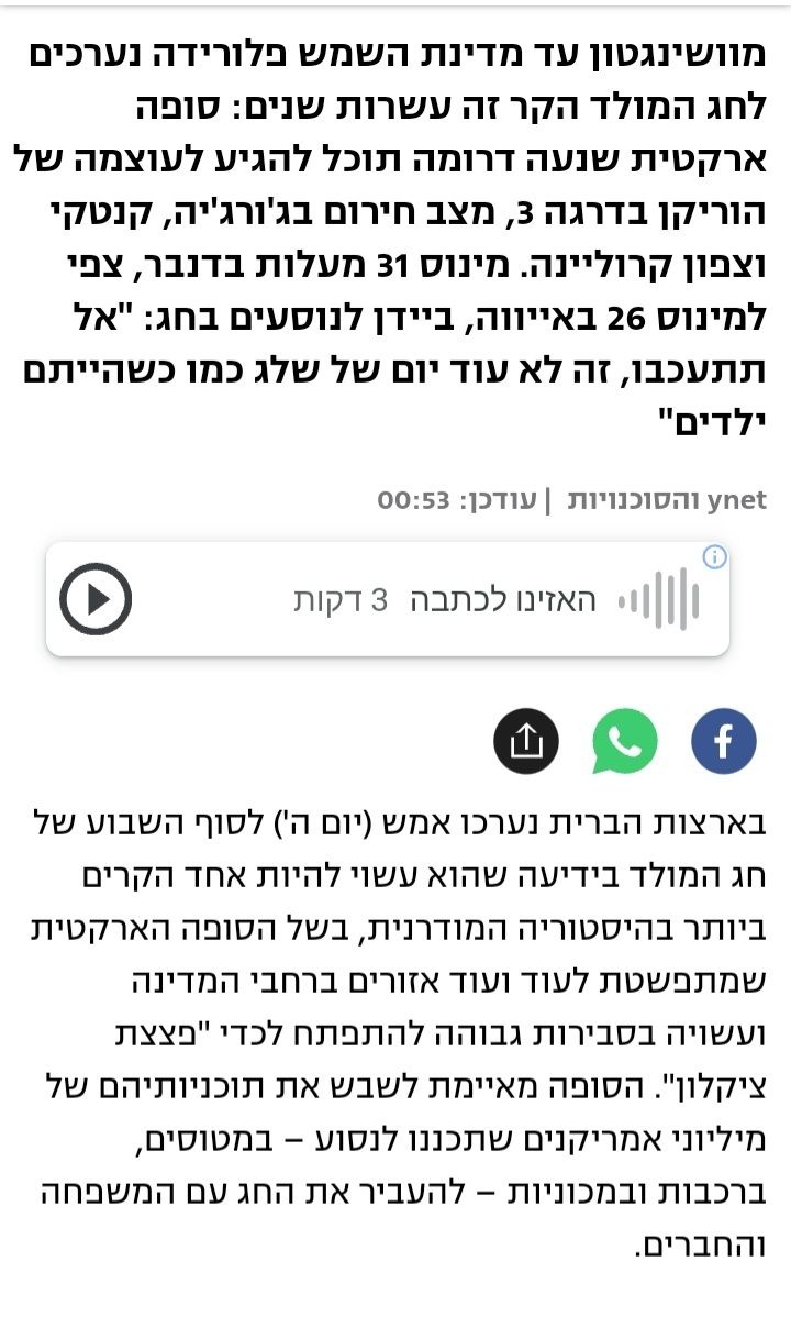 - ביום ראשון יהיה קריר אפילו בפלורידה חנוך א