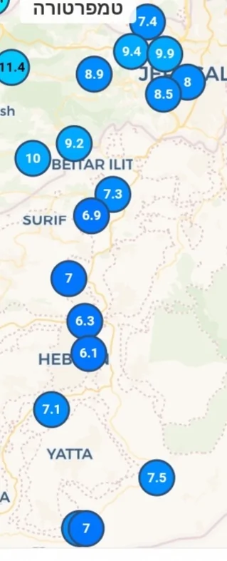 - מערב ירושלים 0.9 מ"מ. קר עם רוח, 9 מעלות דובי