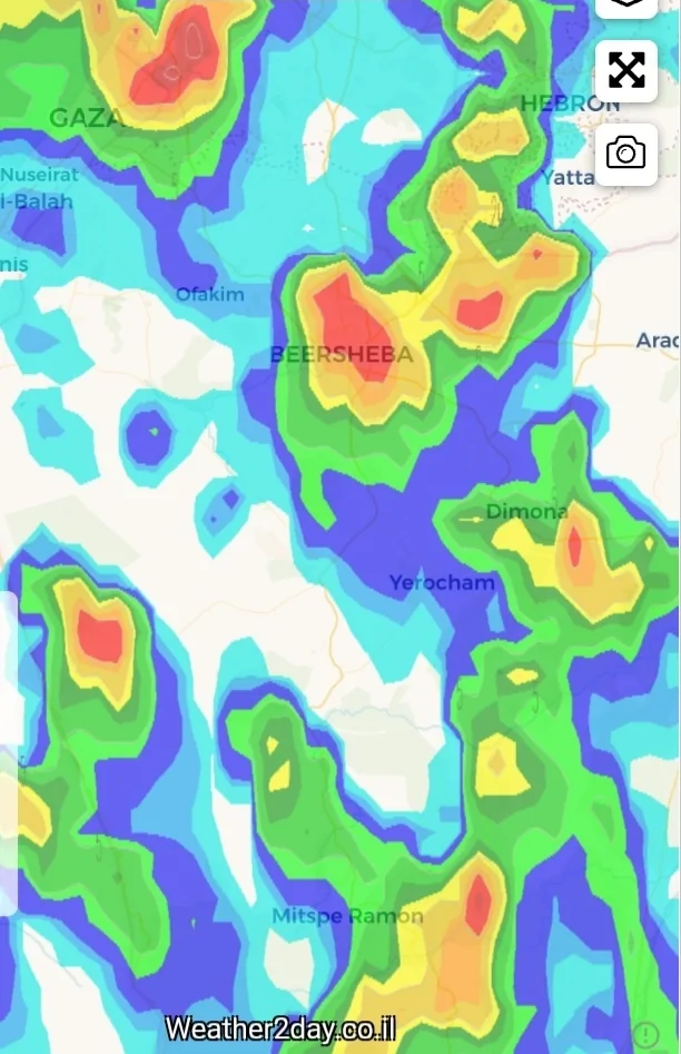 כולל בית שמש, ירושלים ומעלה אדומים. (בירושלים הרבה רסס גשם אנגלי)