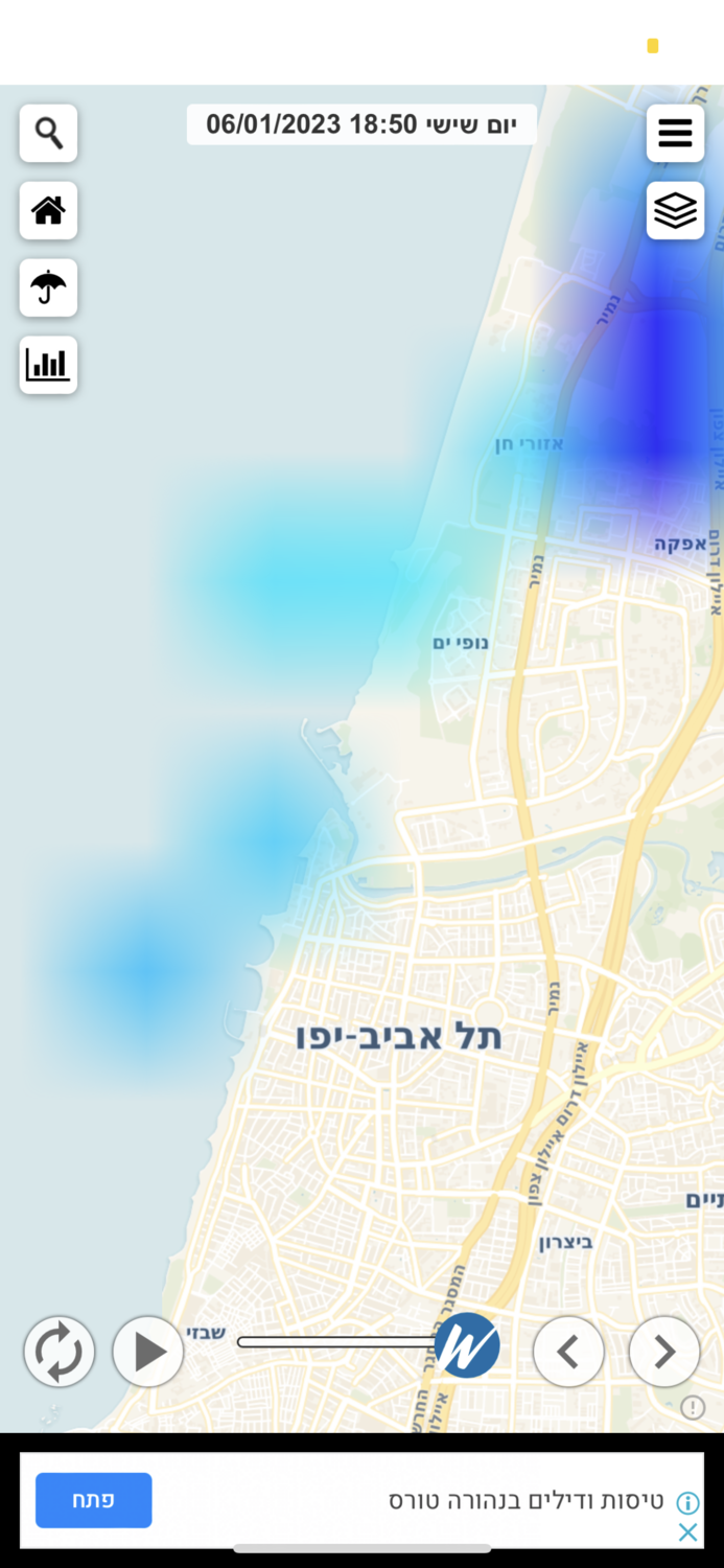 - גשם בתל אביב, 5.6 מ''מ היום. אלון,בת ים