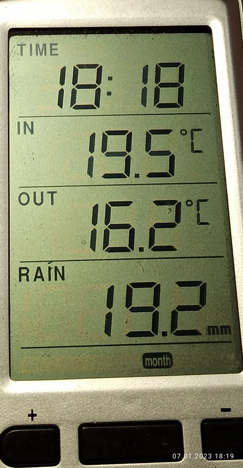 הגשם בלילה הקודם היה הגשם הראשון בחודש הזה (ינואר), וגם מד הגשם שלי שהראה גשם חודשי של 19.2 (כרגע כבר עלה ל- 21.3) הוא רק מהגשם שהיה אתמול.