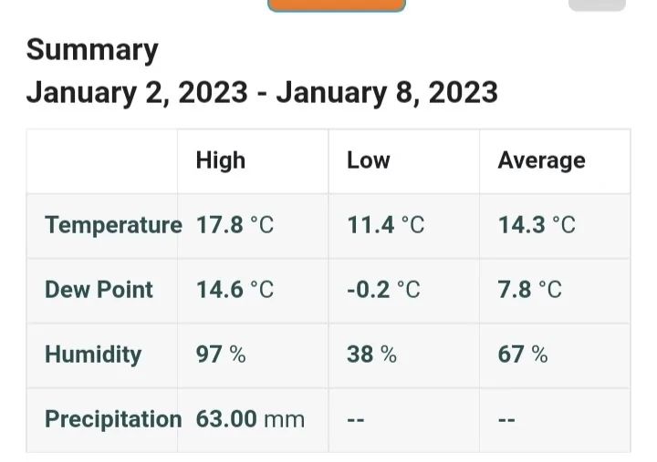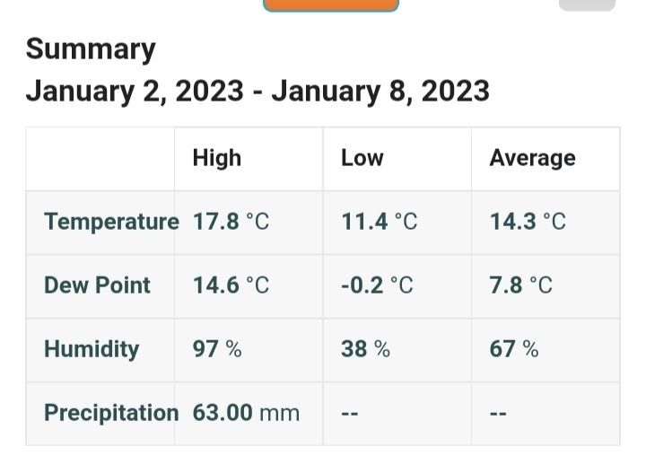 - פסוטה, 11.6 מ"מ מיום רביעי עד עכשיו, 153.7 מ"מ עונתי ג'ריס