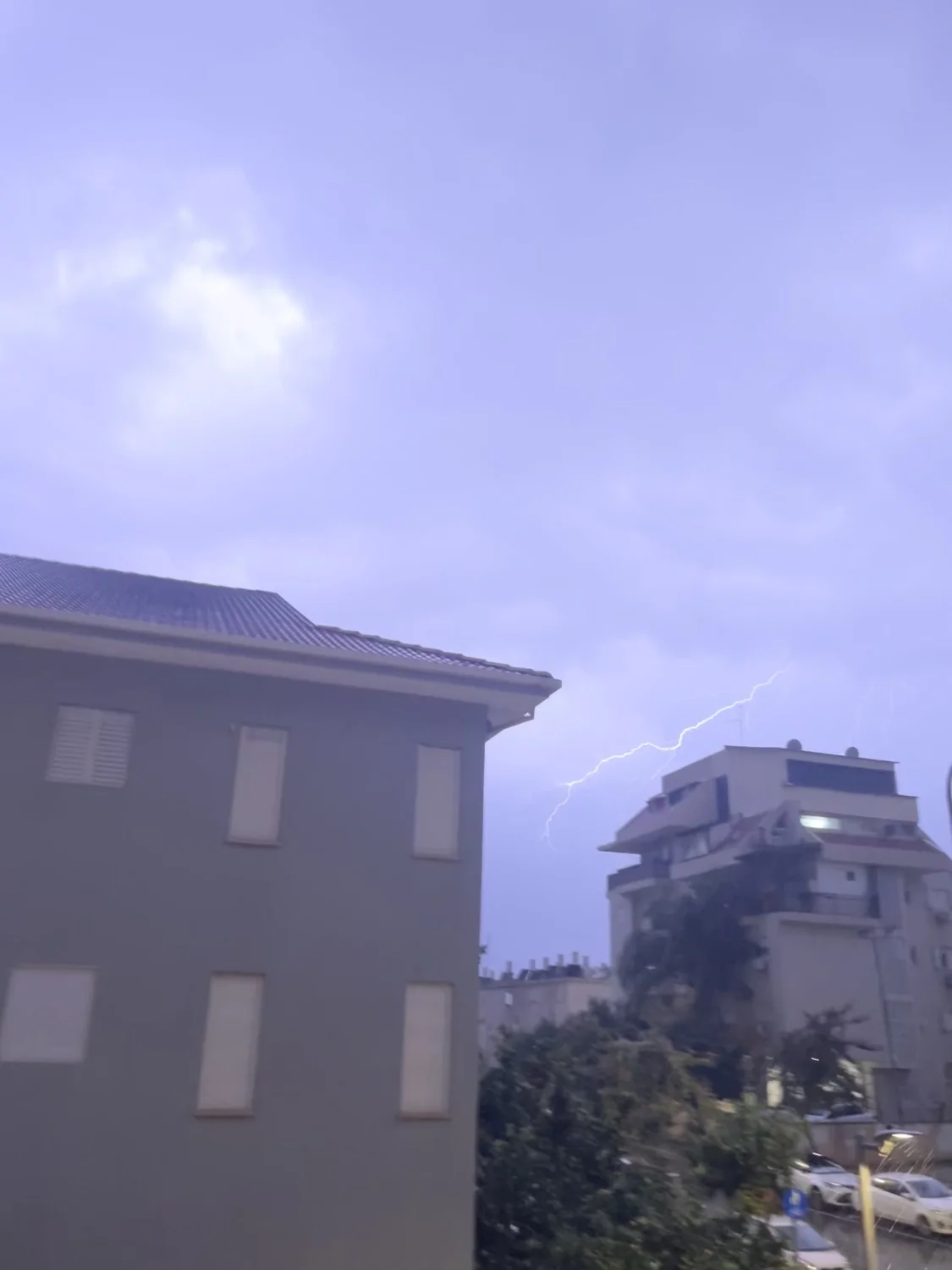 למשך שעתיים מטורף בנתניה מופעיםכל חצי שנייה כולל מטחי ברד כבד וגשם עז