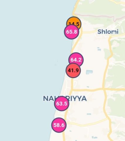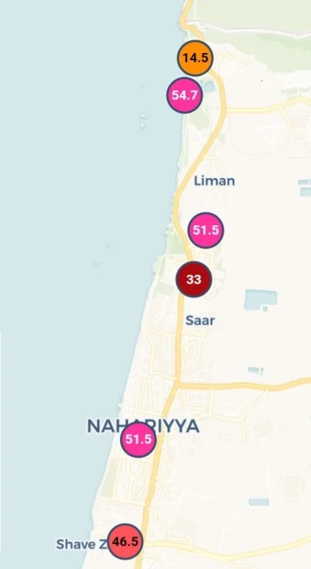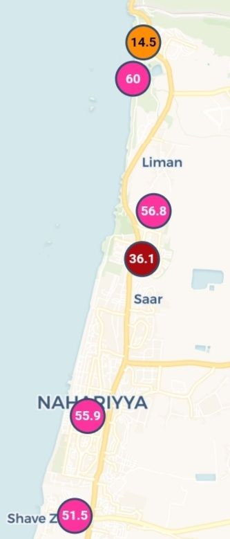 - מרכז הכרמל - 75 ממ, רחוב אהוד - 70, ראש הנקרה - 60 חנוך א
