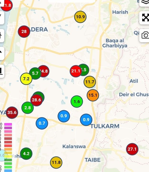 תקווה להגעת הגשם שמדווח בחדרה שם נמדדו ביממה האחרונה מעל 20 מ"מ..... זה ההבדל בין מישור החוף לשפלה הפנימית במערכת גשם זו