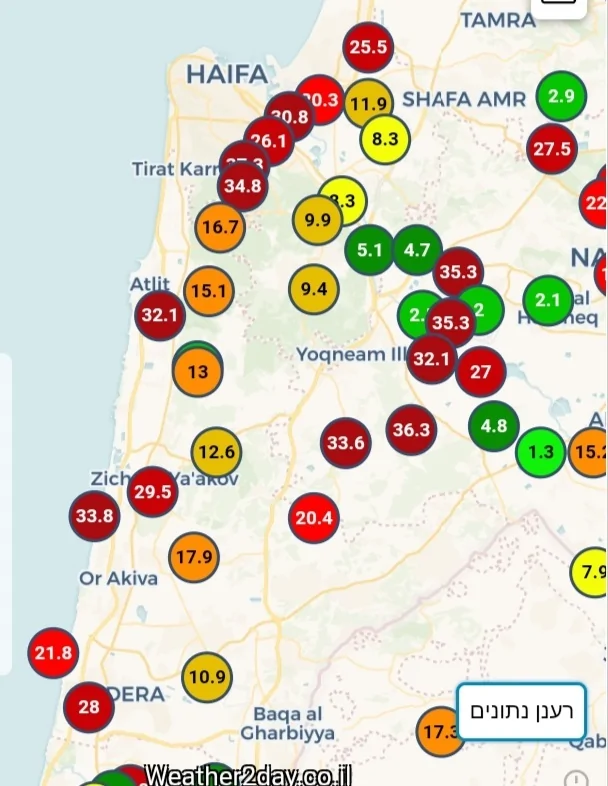 - 65 מ"מ גשם בהדר עליון חיפה מתחילת המערכת יגאל