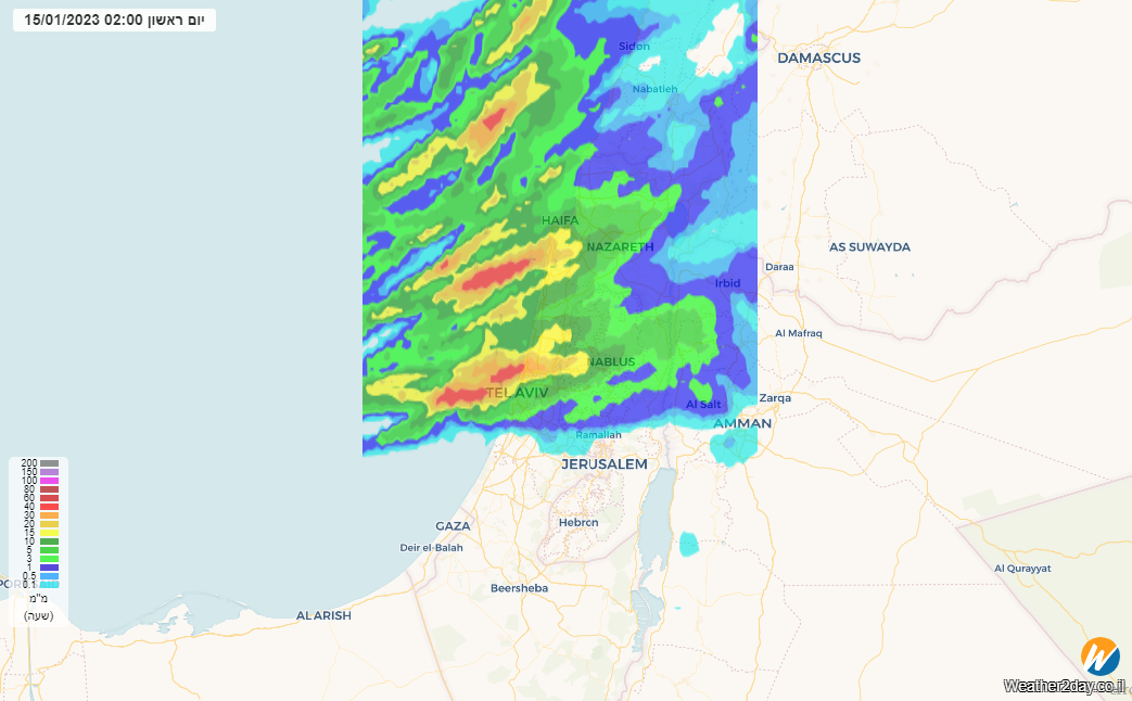 במהלך הלילה והבוקר ירדו כמויות משקעים גבוהות במישור החוף הצפוני ואיזור השרון. בשעות הבאות הגשם צפוי להתפשט לאיזורים נוספים, קרי מישור החוף המרכזי ואיזורים נוספים בצפון.