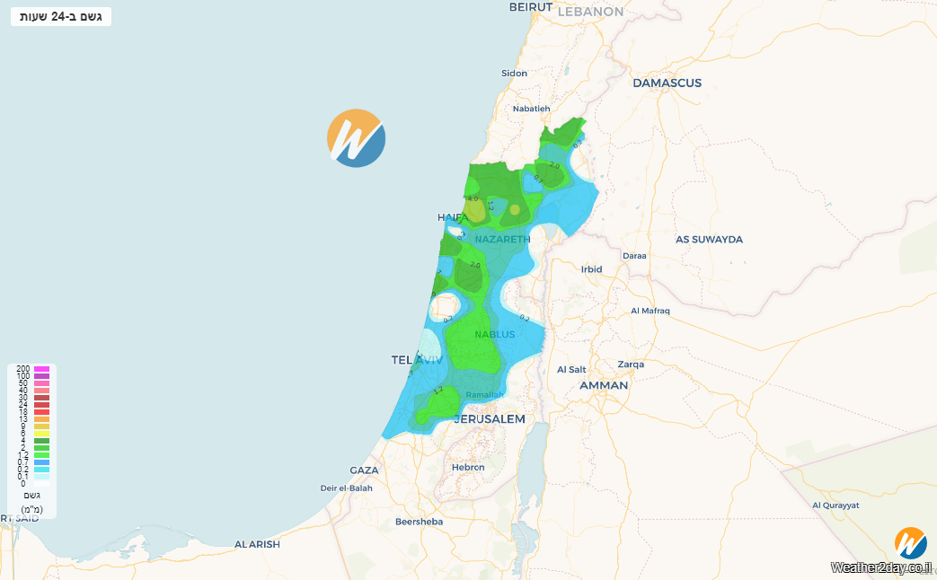 - פס גשם טוב מתלבש על השפלה והרי המרכז דובי