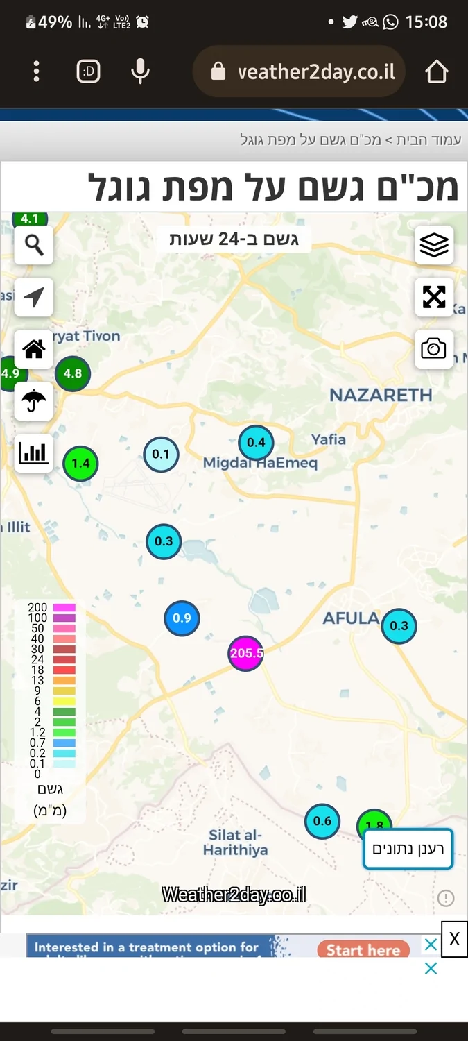 - 143.5 מ"מ ב24 שעות האחרונות, נראה שמישהו הזיז את המד מתחת למרזב מתן