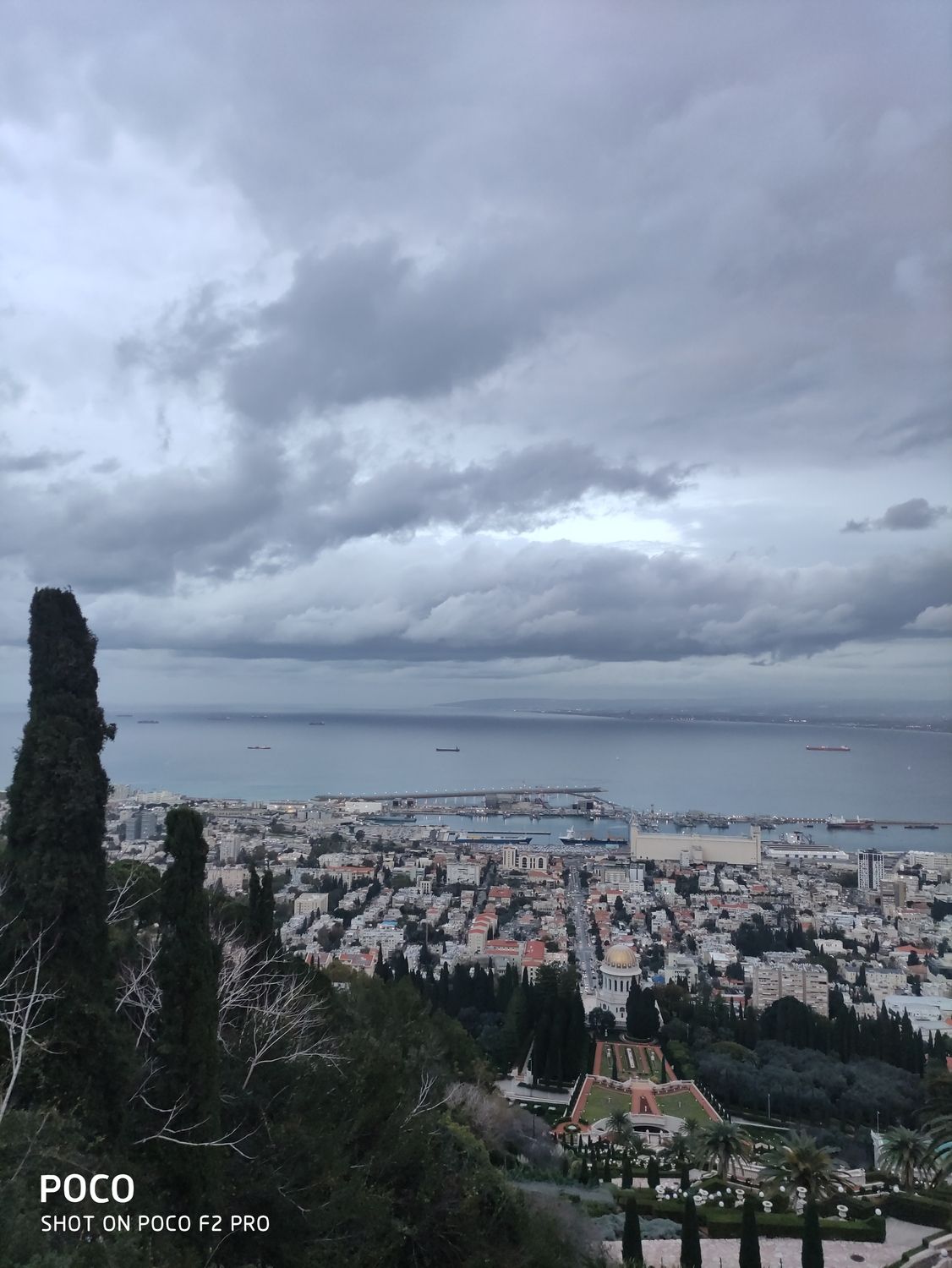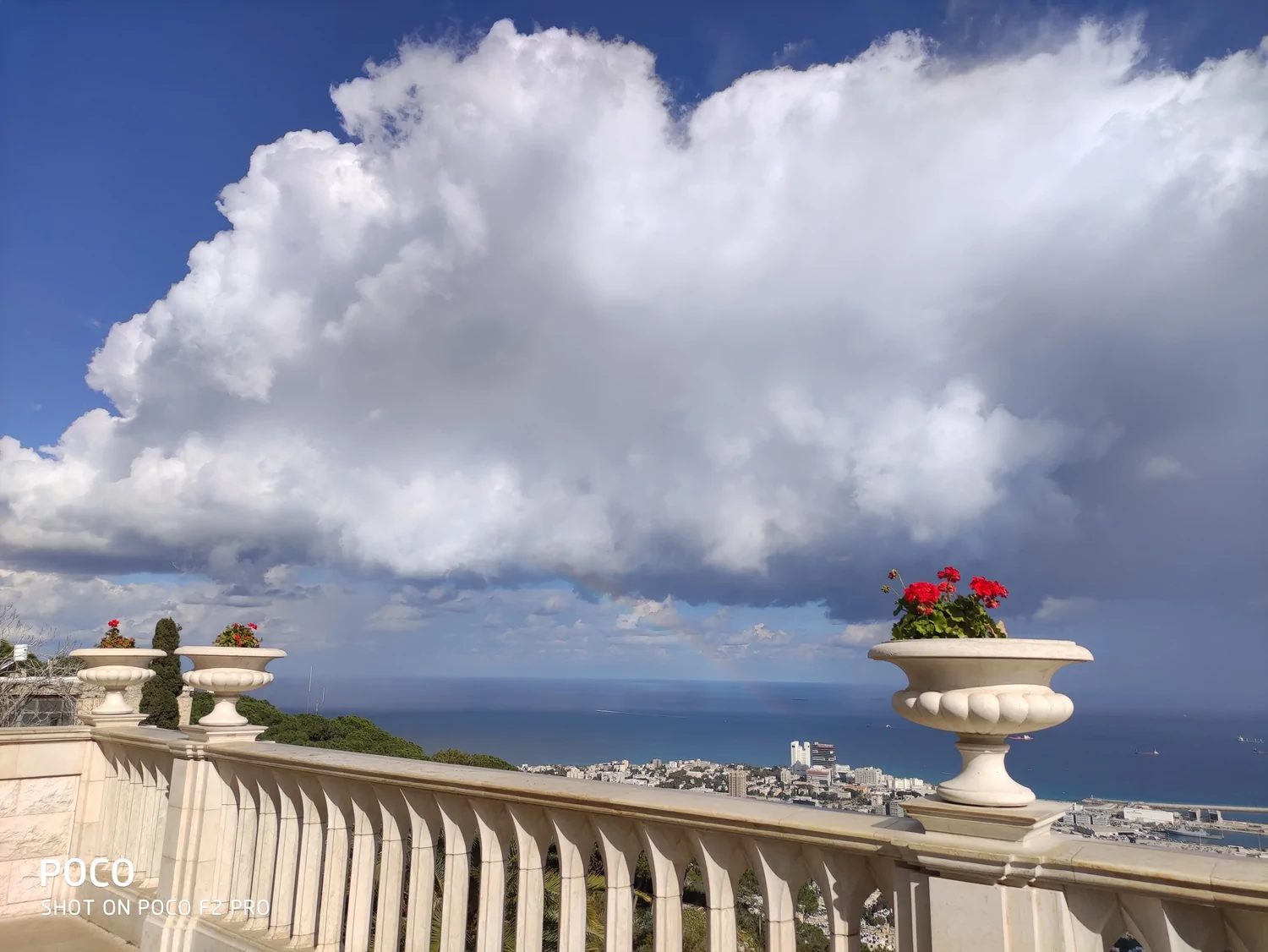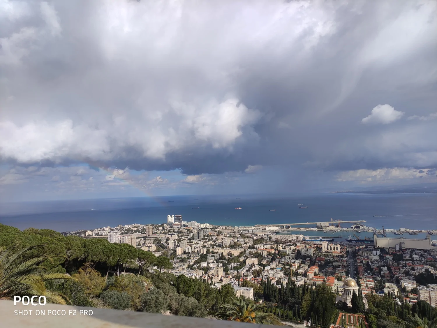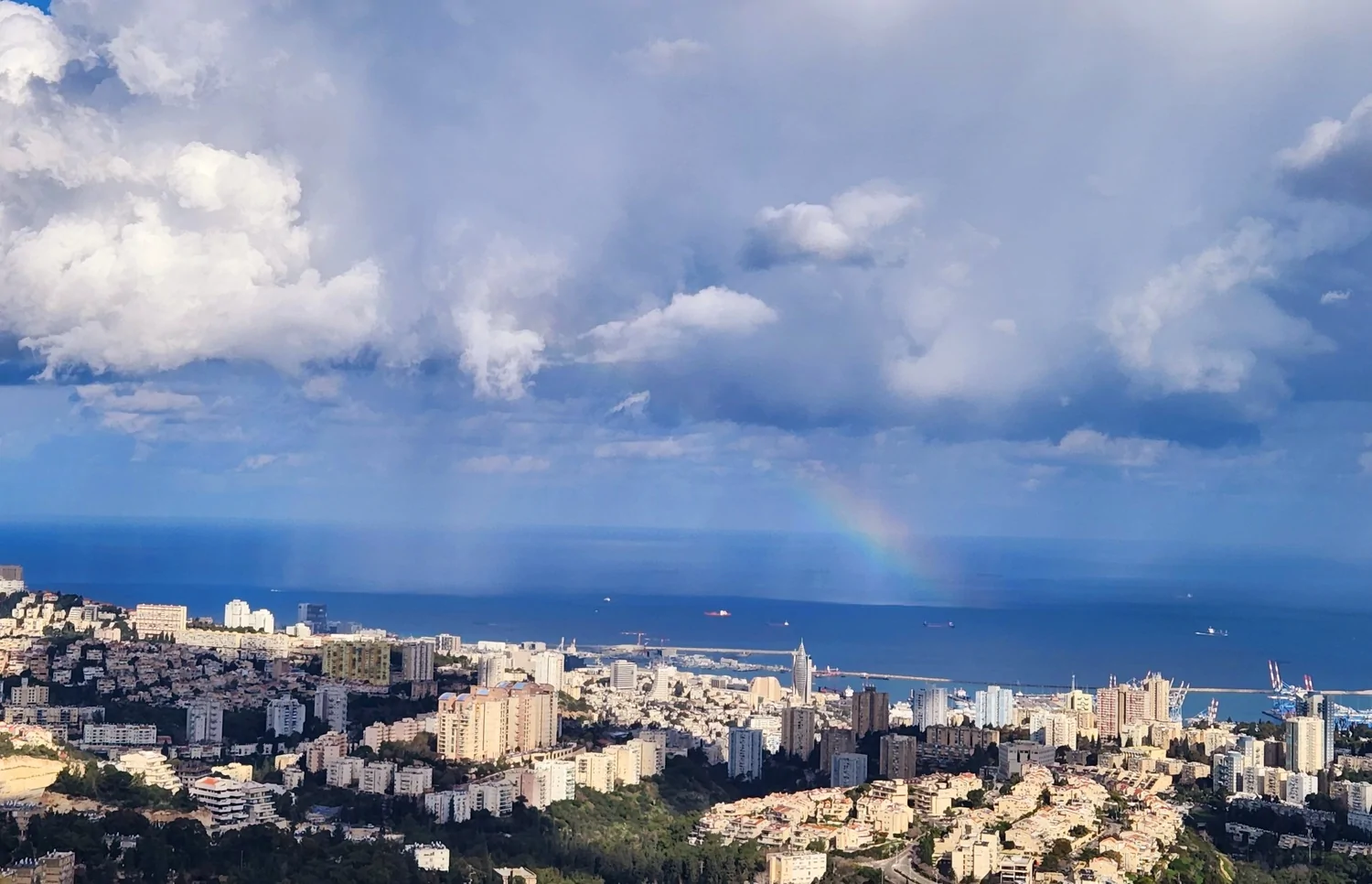 - גשם קל וקשת מעל מפרץ חיפה מונט
