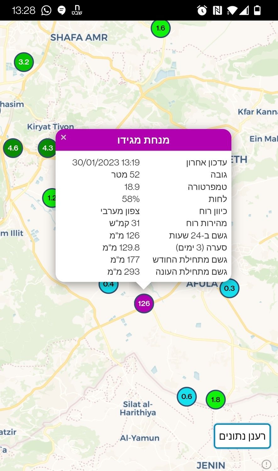 - דיווחי מזג אוויר - יום שני 30/01/2023 אייל הצפון