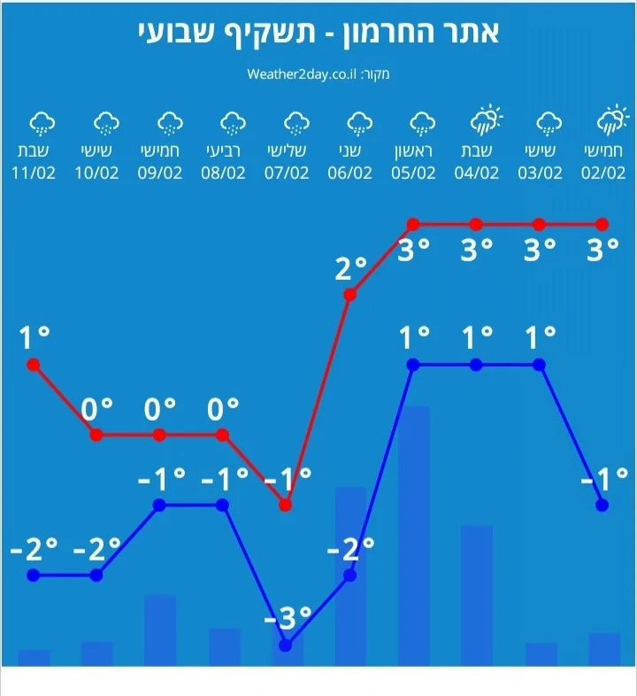 - תחזית האתר לחרמון כמעט 200 ממ = 2 מטר שלג חנוך א