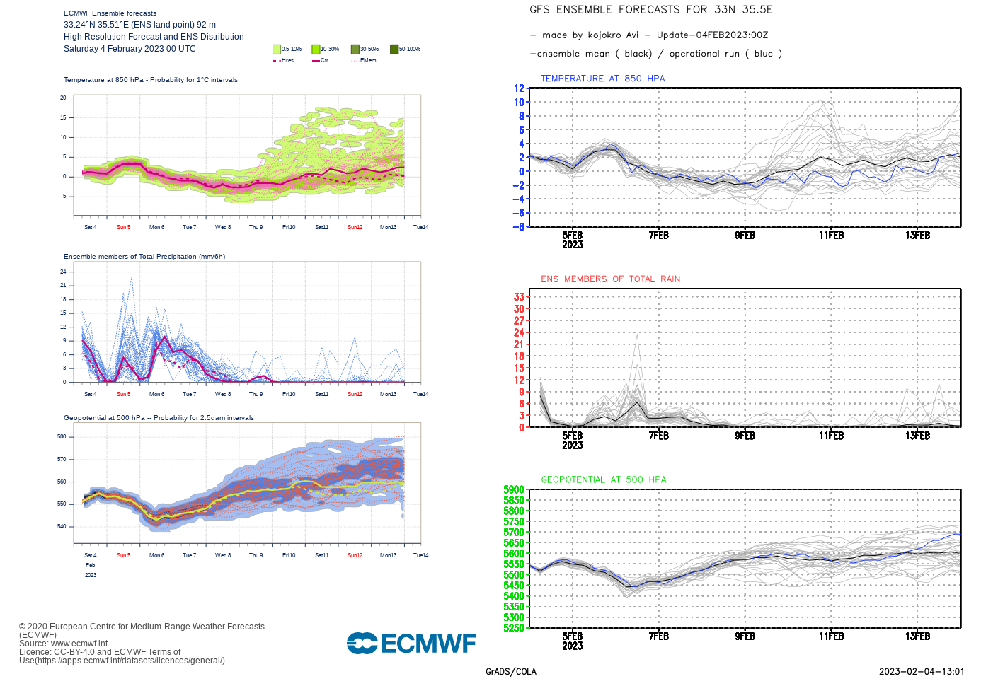יום רביעי ( 08.02.23) : בשעות הבוקר המוקדמות ועד לפני הצהריים עדיין ירדו גשמים מקומיים מצפון הארץ ועד צפון הנגב, עדיין חשש להצפות ולשיטפונות במקומות המועדים לכך. שלג ירד בחרמון ובצפון רמת הגולן, ובשעות הללו יש סיכוי סביר לשלג קל בהרי הגליל והמרכז, משעות הצהריים הגשמים יפסקו בצפון ויוסיפו לרדת גשמים מקומיים מדי פעם במרכז ובצפון הנגב תוך כדי היחלשות והתמעטות הגשם ,הסיכוי לשלג בהרי המרכז כבר הולך ופוחת. יהיה ביום זה קר מאוד. הרוח צפונית מערבית מתונה עד ערה ויתכנו משבים עזים.