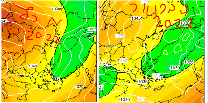 אני מצרף תמונה ריאנליזה מהיום לפני של מרץ שנה שעברה לעומת יום חמישי בבוקר השבוע. שימו לב לדמיון. במצב כזה יכול לרדת שלג רק באוויר, אך לא יערם. שמתי תמונה של גפס, לאחר מבט שני במודלים איסי הרבה יותר דומה למרץ שנה שעברה מגפס.