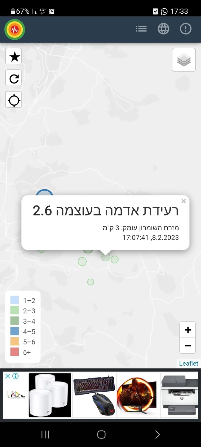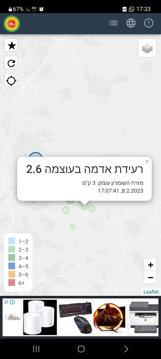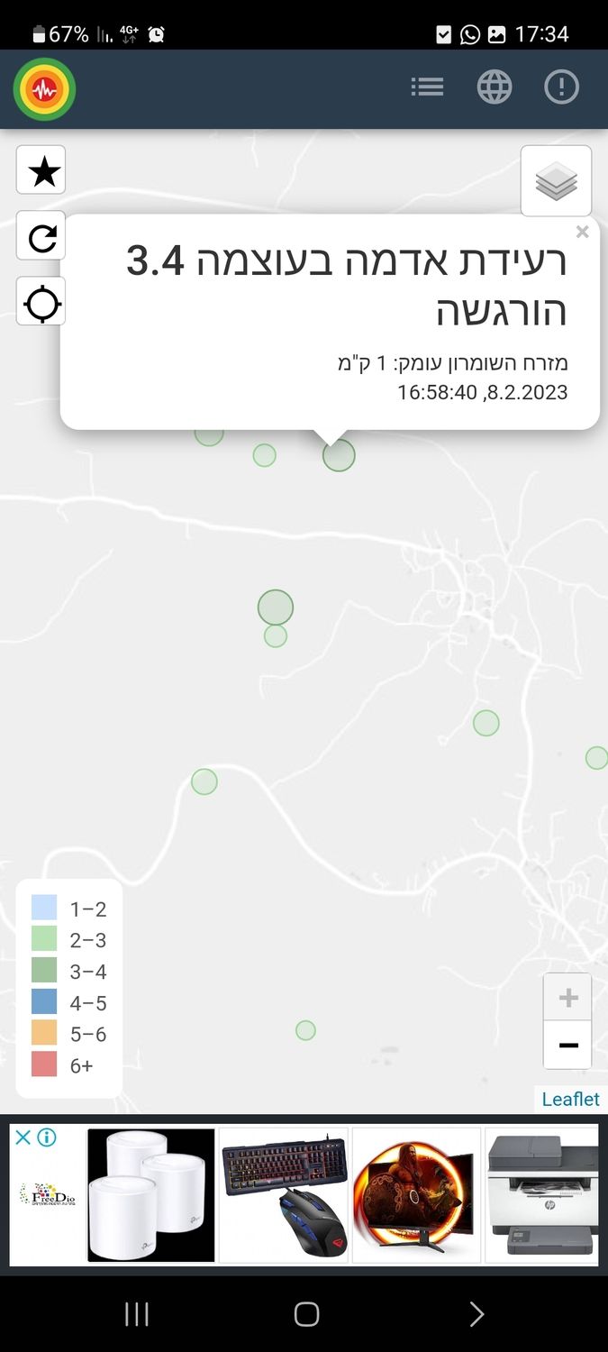 הרעידה השנייה הורגשה גם בחלקים מצפון הארץ, בהחלט מדאיג הרצף הזה של הרעידות שמסרב להסתיים באזור