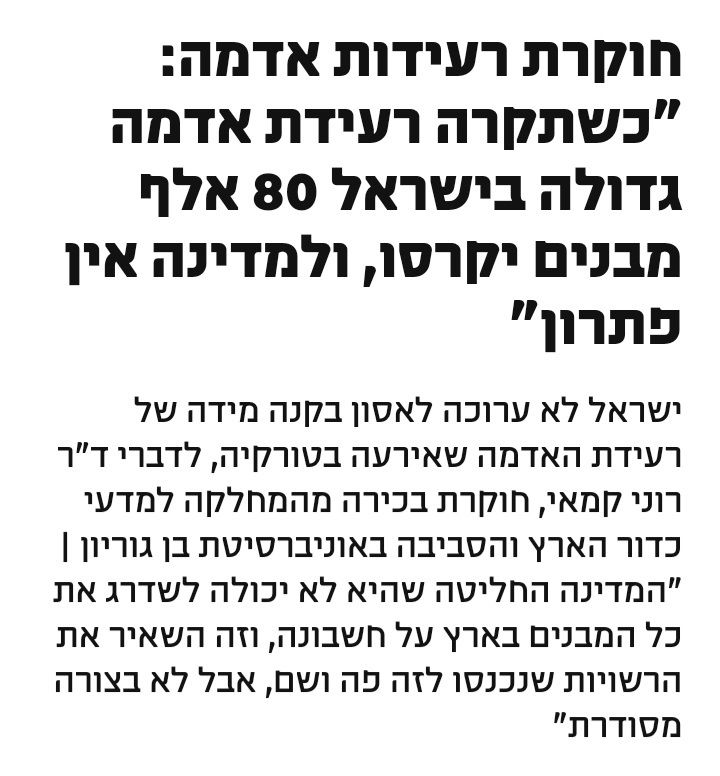 לפי האינטואיציה שלי, לא תהיה כאן רעידת אדמה קטלנית בשנים הבאות.