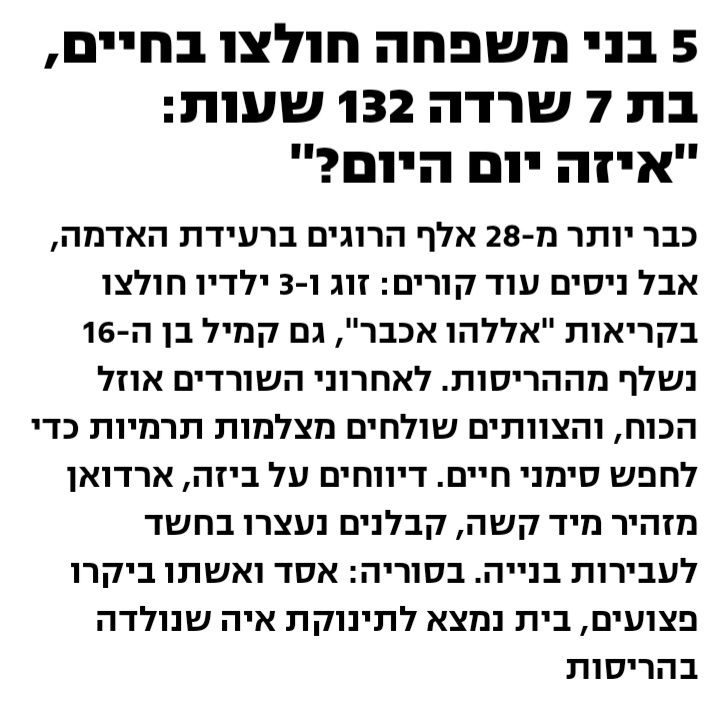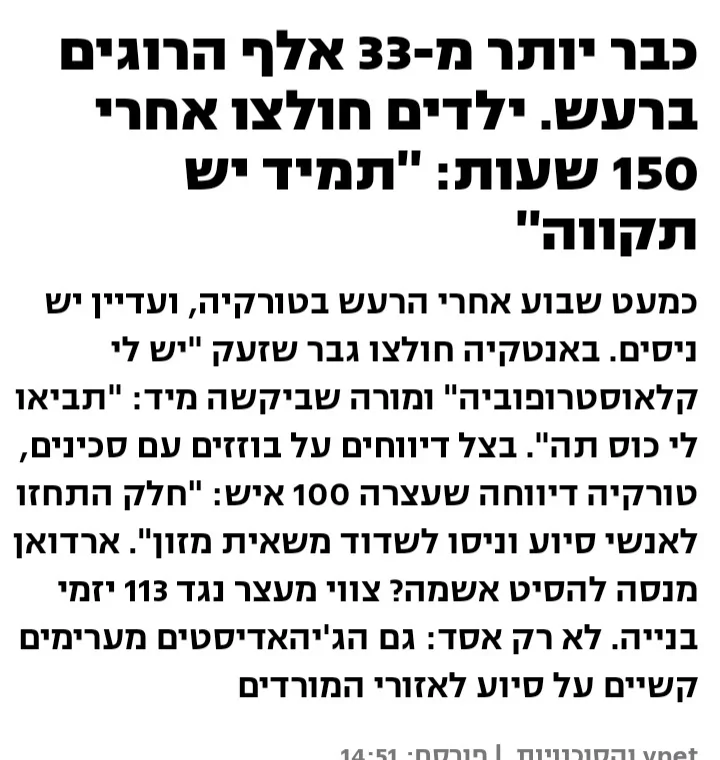 - הסיכוי למציאת ניצולים נוספים קרוב לאפס חנוך א