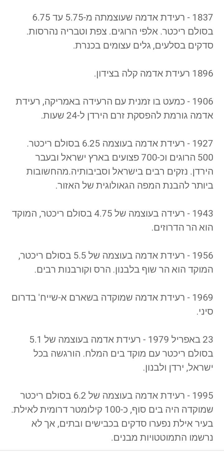 האחת(הדרומית יותר, בשעות הצהריים) בעוצמה 4.8(דומה לרעידת האדמה שהייתה בכנרת ביולי 2018 בעוצמתה)