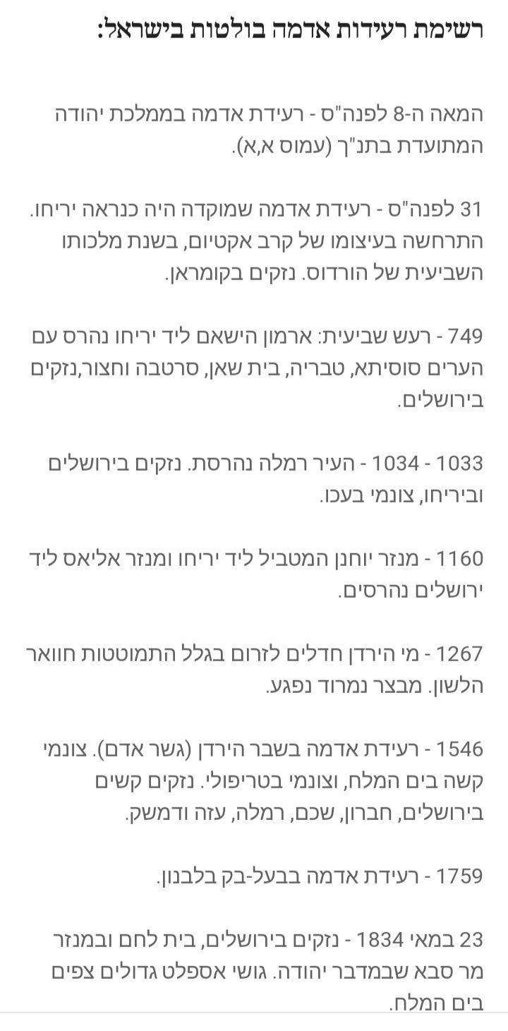 מעבר לזה, לפי המכון הססמולוגי הישראלי, יש אלפי רעידות אדמה בשנה (והם סופרים רק את מה שמעל ל4 בסולם מגניטודה, לא קיים יותר בולם ריכטר חשוב להדגיש).