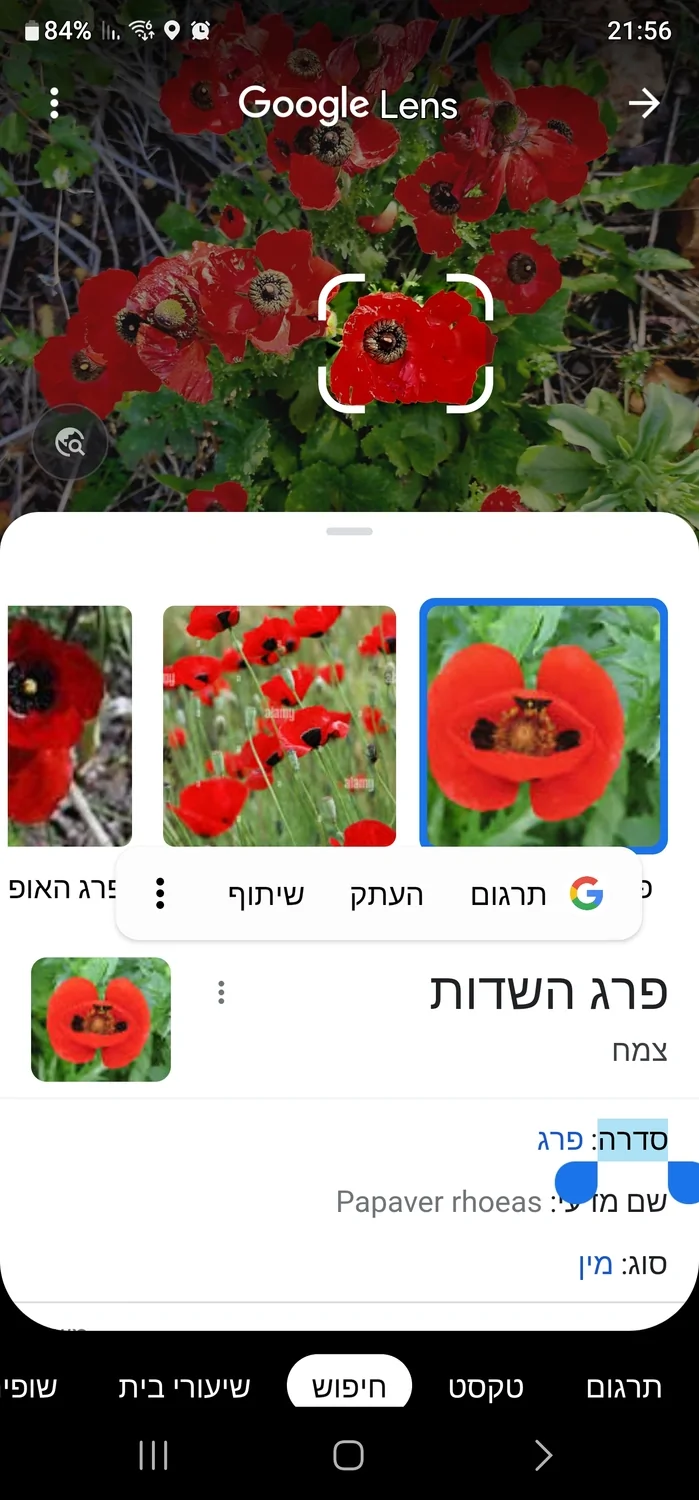 מניסיון אישי, Google lens מתקשה להתמודד עם ההבדלים בין כלניות, פרגים ונוריות. בתמונה, כמו שכתבו אחרים, זזו נורית אסיה. פרגים הם ממשפחה אחרת מהכלניות והנוריתיות ומרכז הפרח שלהם נראים אחרת