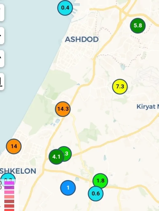 - אשקלון צפון 22 ממ מתוכם 18 בעשר דקות. באר גנים הבנתי 42 ממ ברבע שעה ( לדעץי חשוד מדי ) יאיר