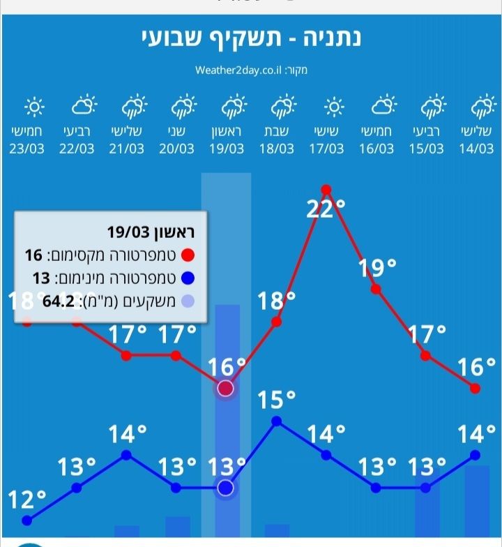 - דיווחי מזג אוויר – יום שלישי 14/3/2023