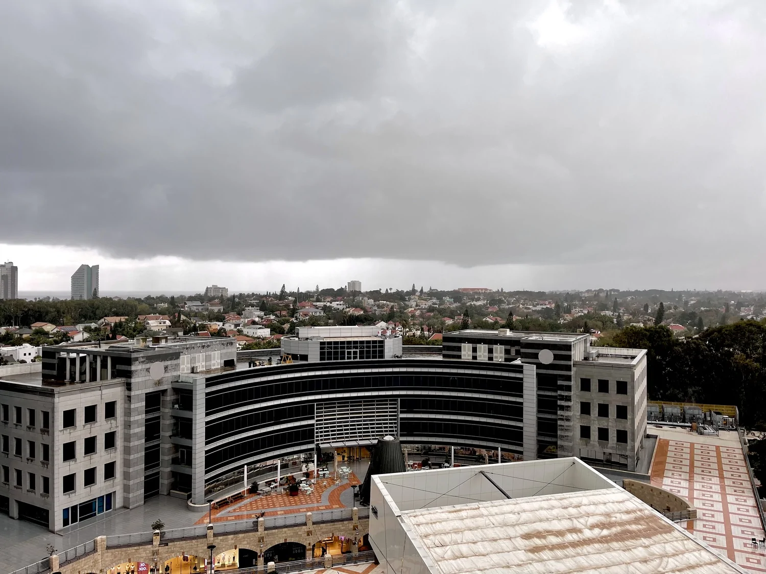 - ענן מפותח מאוד ממערב לתל אביב עם מדף מתחתיו אוריין
