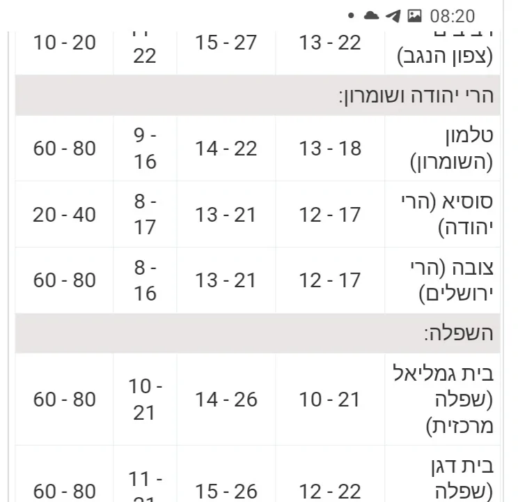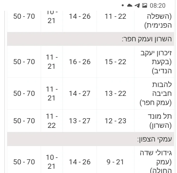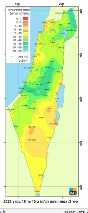 כל אזור מישור החוף הצפוני עם 350-400 מ"מ בלבד. 60% מהשנתי.