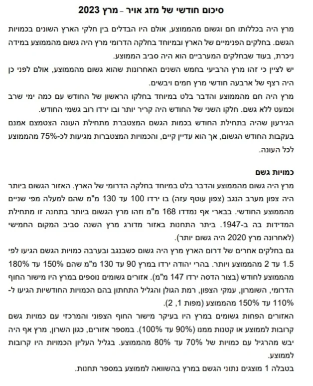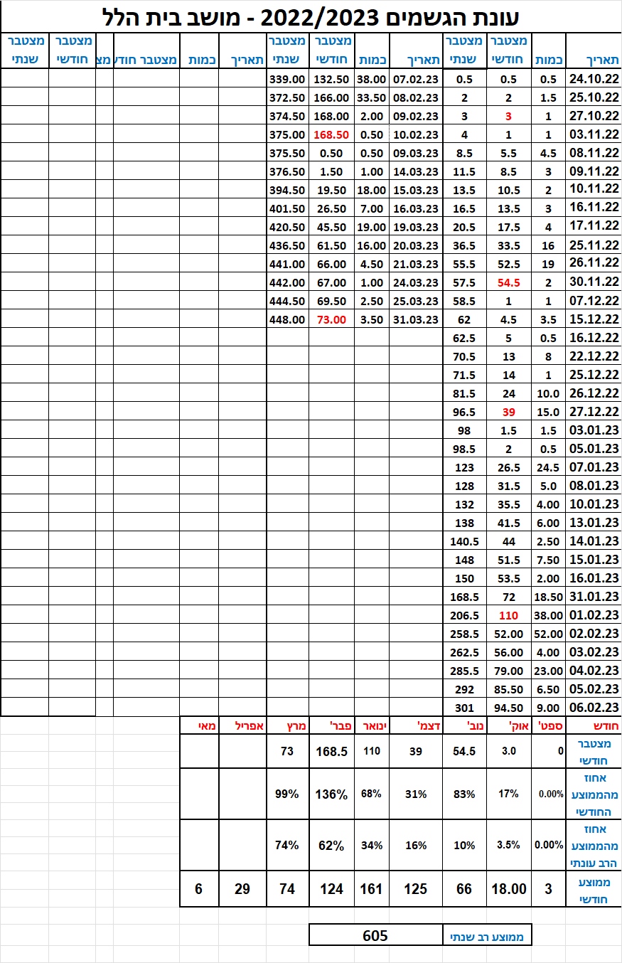 - סיכום חודש מרץ, כמויות גשם במושב בית הלל. קוזוקרו אבי