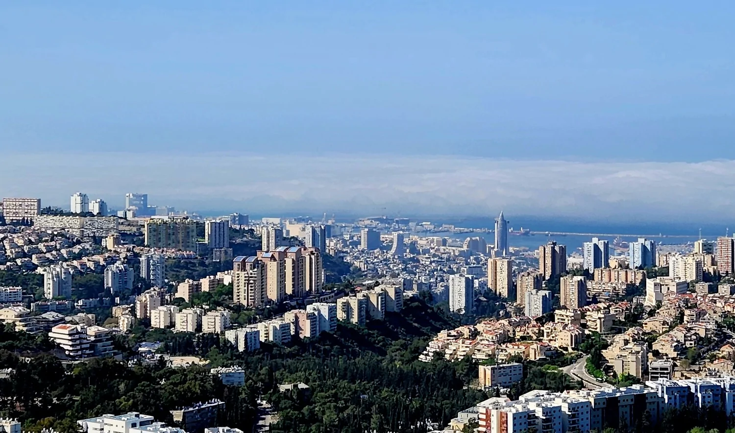 - שמיכת עננים/לחות מכסה את מפרץ חיפה מונט
