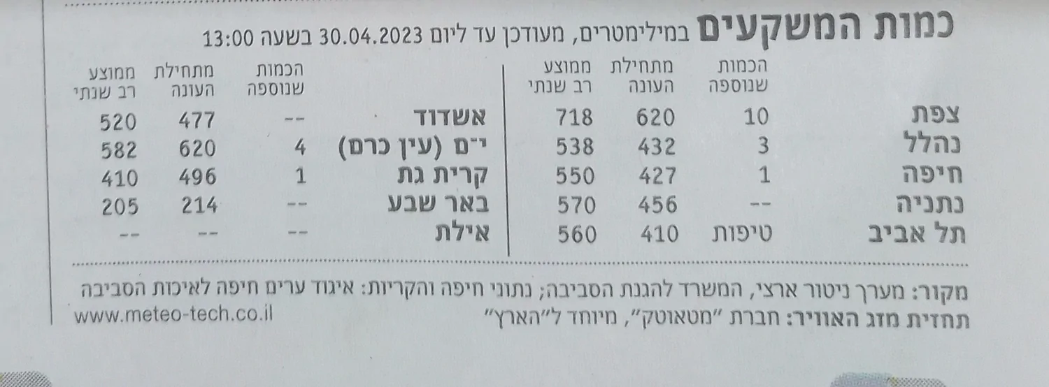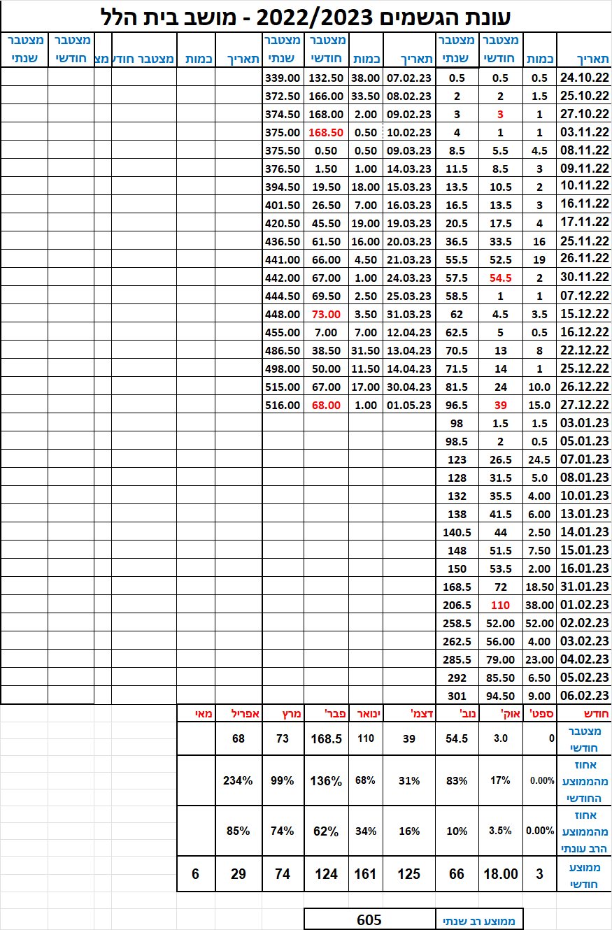 - סיכם עונה מאשקלון צפון 583.7 ממ ממוצע שנתי 474 יאיר