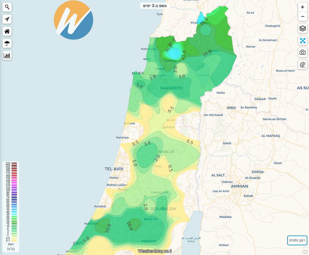 - סיכום משקעים למערכת הקצרה בסוף אפריל (28-30/04/2023) Weather2day