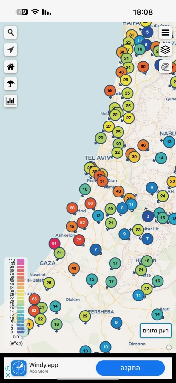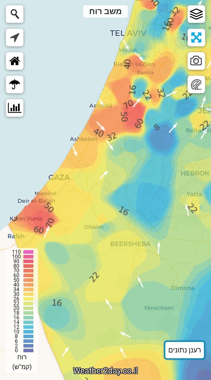- שימו לב למשבי ברוח במפת החום Weather2day