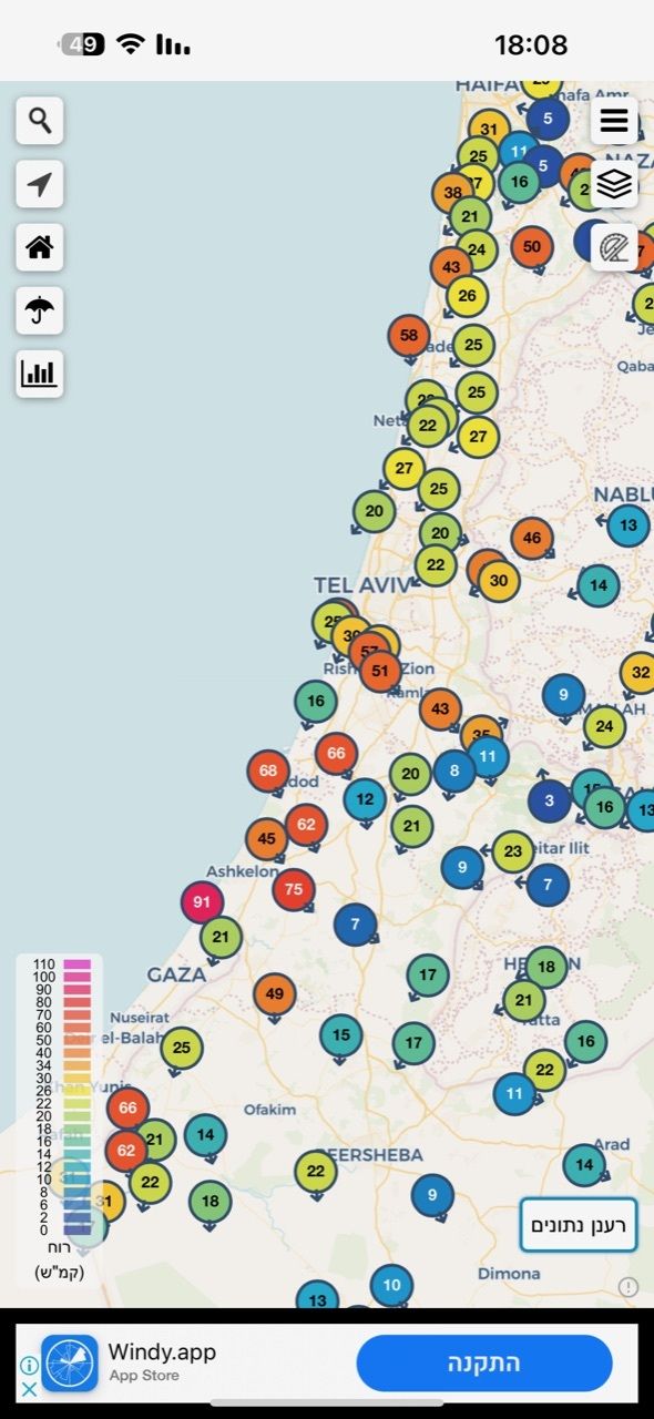 - פרצי רוח חזקים באיזור בת ים והחוף Ram