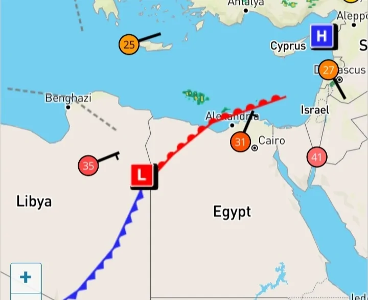 הוא ינוע לכיוון צפון מזרח כדרכם של שקעים באזורנו. מחר בצהריים ימצא ממערב לנו וייצר רוחות מזרחיות חמות. מחר בחצות הוא יימצא מצפון מערב ויתחיל לייצר רוחות מערביות, מה שאומר שבירת שרב