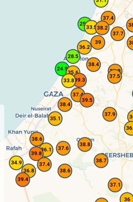 - כבר 35.5 לפי זה מחר באשקלון יגיעו ל44 קל יאיר