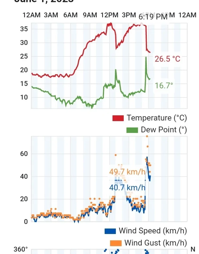 יום שכלל פרקי רוחות חזקים מאוד שהעיפו הכל באוויר וכמעט הפילו עצים. להערכתי של 85-90 קמ"ש לערך בשיא.
