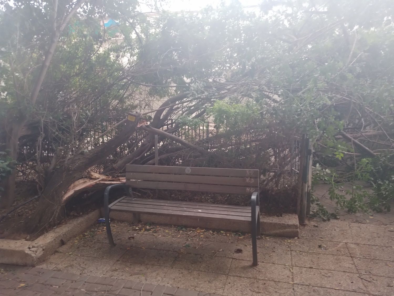 - שיח גדול קרס וחוסם את הכניסה לקופת חולים ברמת גן חנוך א