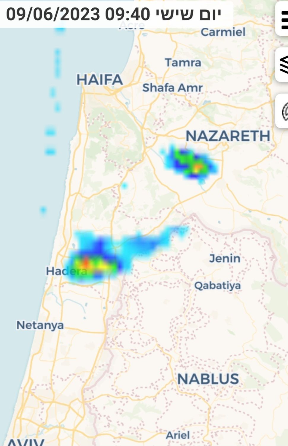 סופות רעמים וגשם בשעה האחרונה בעיקר בצפון הנגב, כרגע מגמת היחלשות, אבל התרחבות גם לאיזורים במרכז .