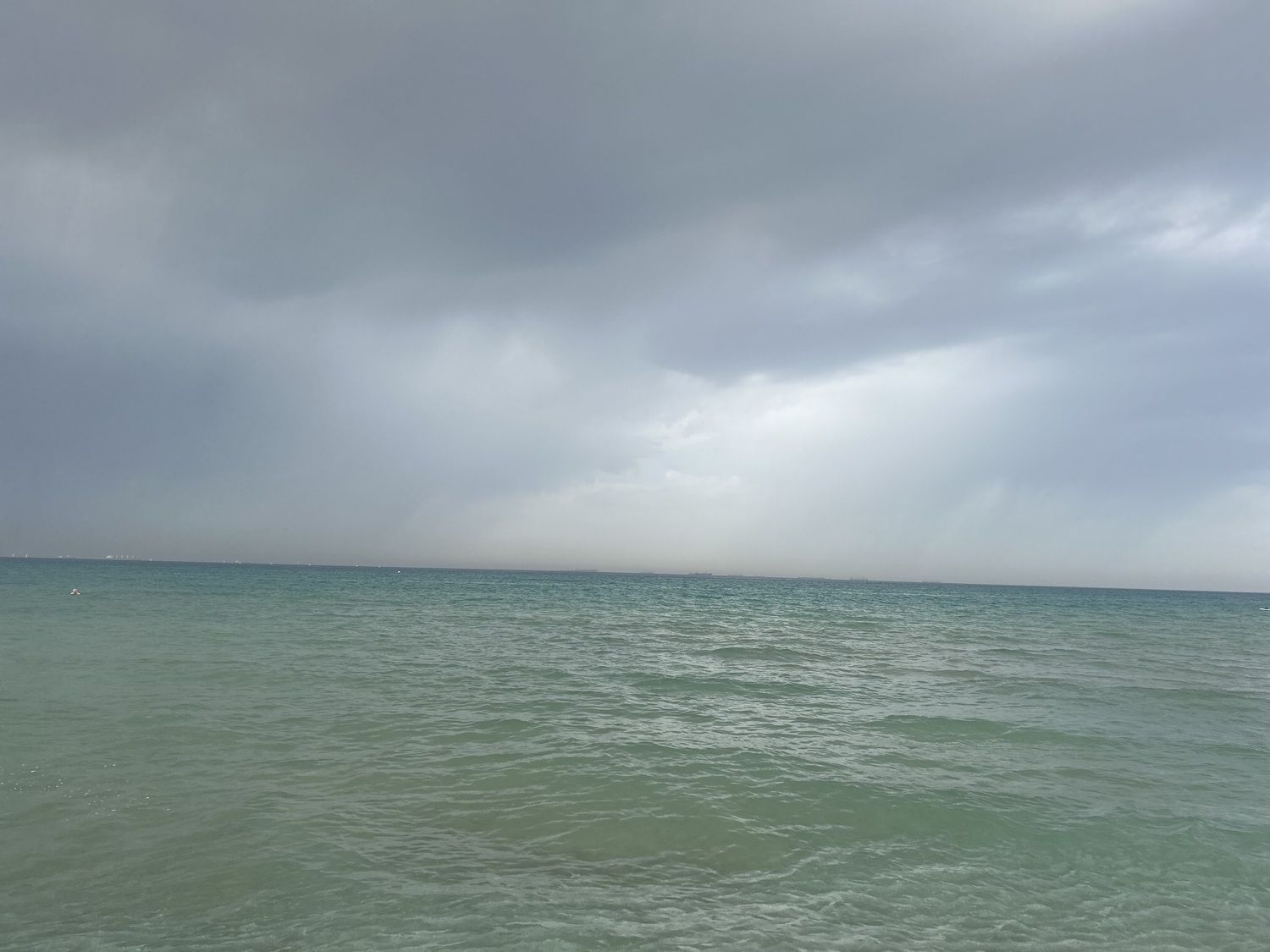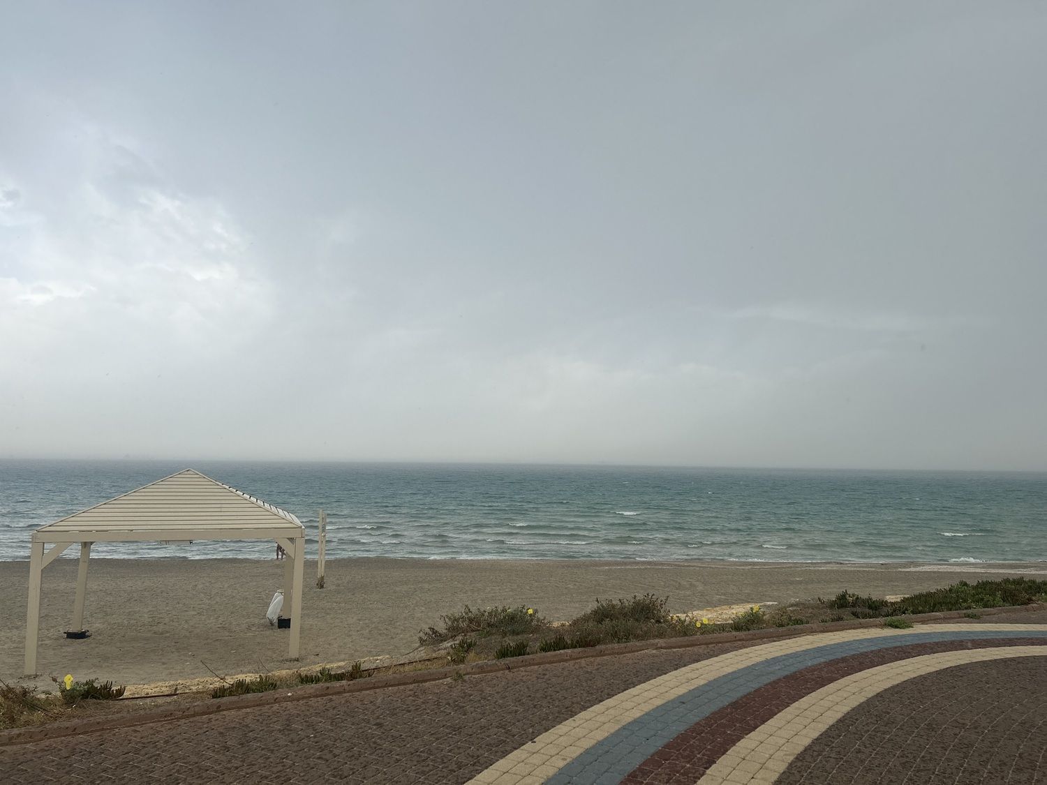 חצי שעה בבת ים עם גשם בינוני שגרם למעט שלוליות..מזג אוויר נעים..הזוי קצת ליוני ..תענוג