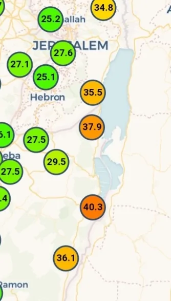 - חמים בירושלים, 28.5° על 45%, בים המלח כעת 42° (!) אליעזר
