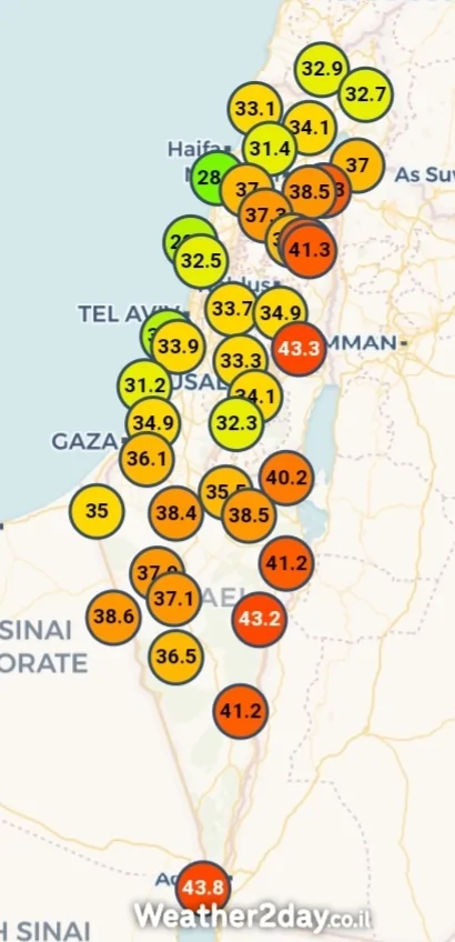 - 34° עם 25% בי-ם, על סף השרב אליעזר